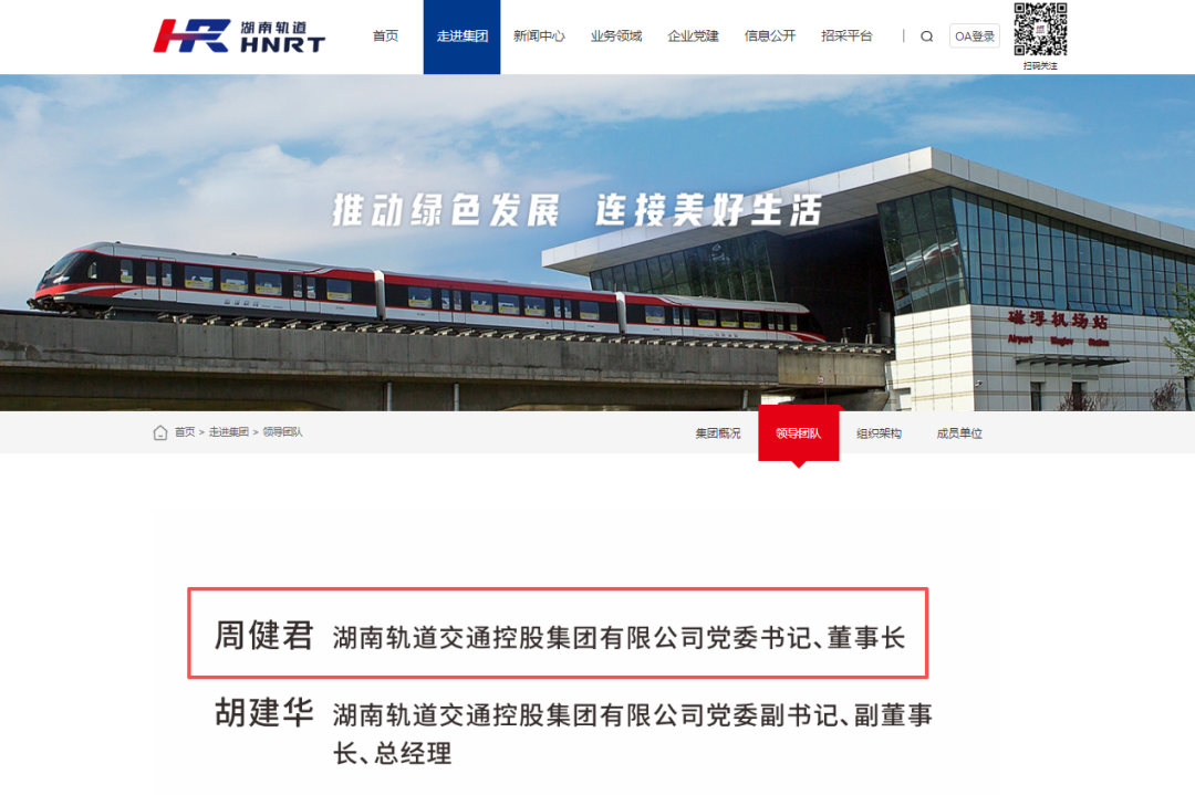 据湖南轨道交通控股集团有限公司官方网站“领导团队”一栏显示,周健君已任湖南轨道交通控股集团有限公司党委书记、董事长。