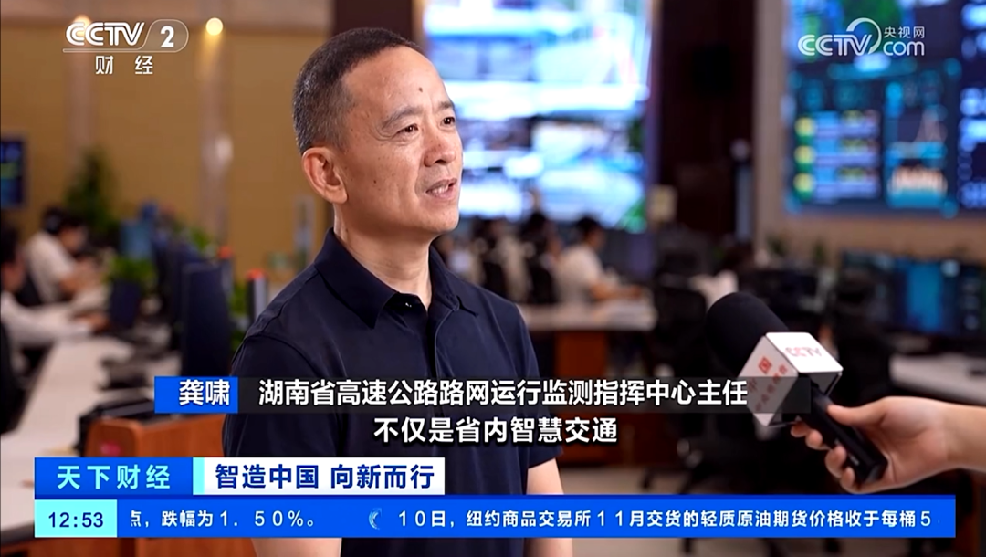 湖南省高速公路路网运行监测指挥中心主任龚啸:“不仅是省内智慧交通,现在我们还在不断探索推进区域协同,重点推进省级协同联动建设,打通数据共享通道,实现突发事件路况、实时视频、情报板发布内容和交通流量等关键信息的实时互联与秒级同步。”