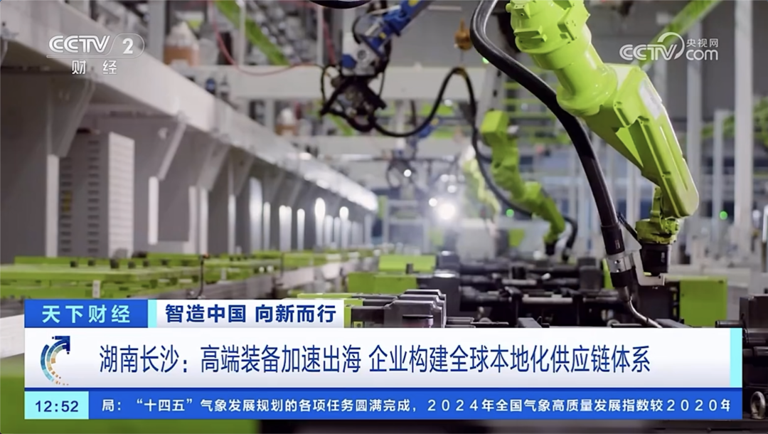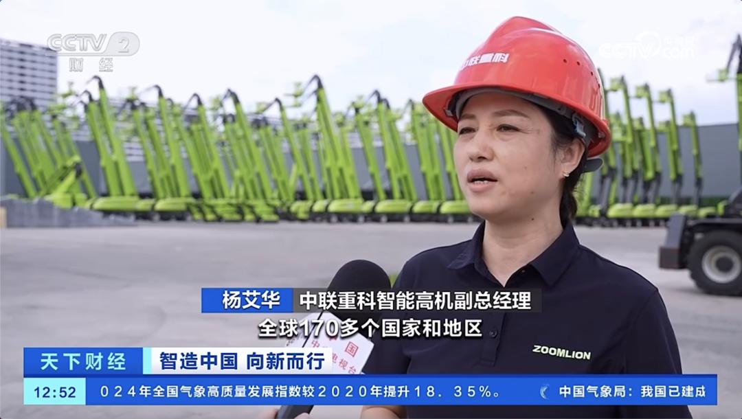 中联重科智能高机副总经理杨艾华:我们全球有23个智慧产业园,已经建成的有16个,产品已经远销到全球170多个国家和地区,海外收入占比达到整个营收的50%以上。