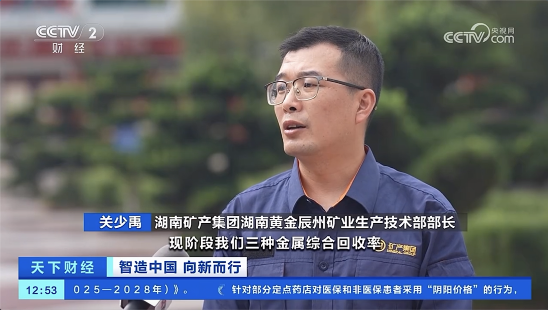 湖南矿产集团湖南黄金辰州矿业生产技术部部长关少禹:根据三种金属不同的特性形成了一套重选、浮选加冶炼联合的技术,现阶段三种金属综合回收率都达到了90%以上。